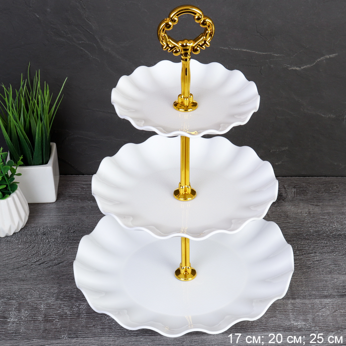Ваза для сервировки 3-х ярусная 15/20/25 Круг Волна белая / D-1269 /уп 80/ Пластик/689069