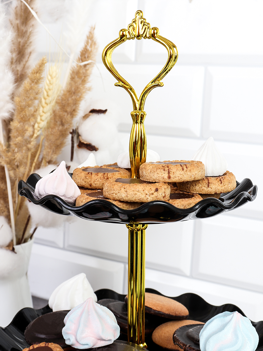 Ваза для сервировки 3-х ярусная 15/20/25 Круг Волна черная / KB22 /уп 80/ Пластик/739562