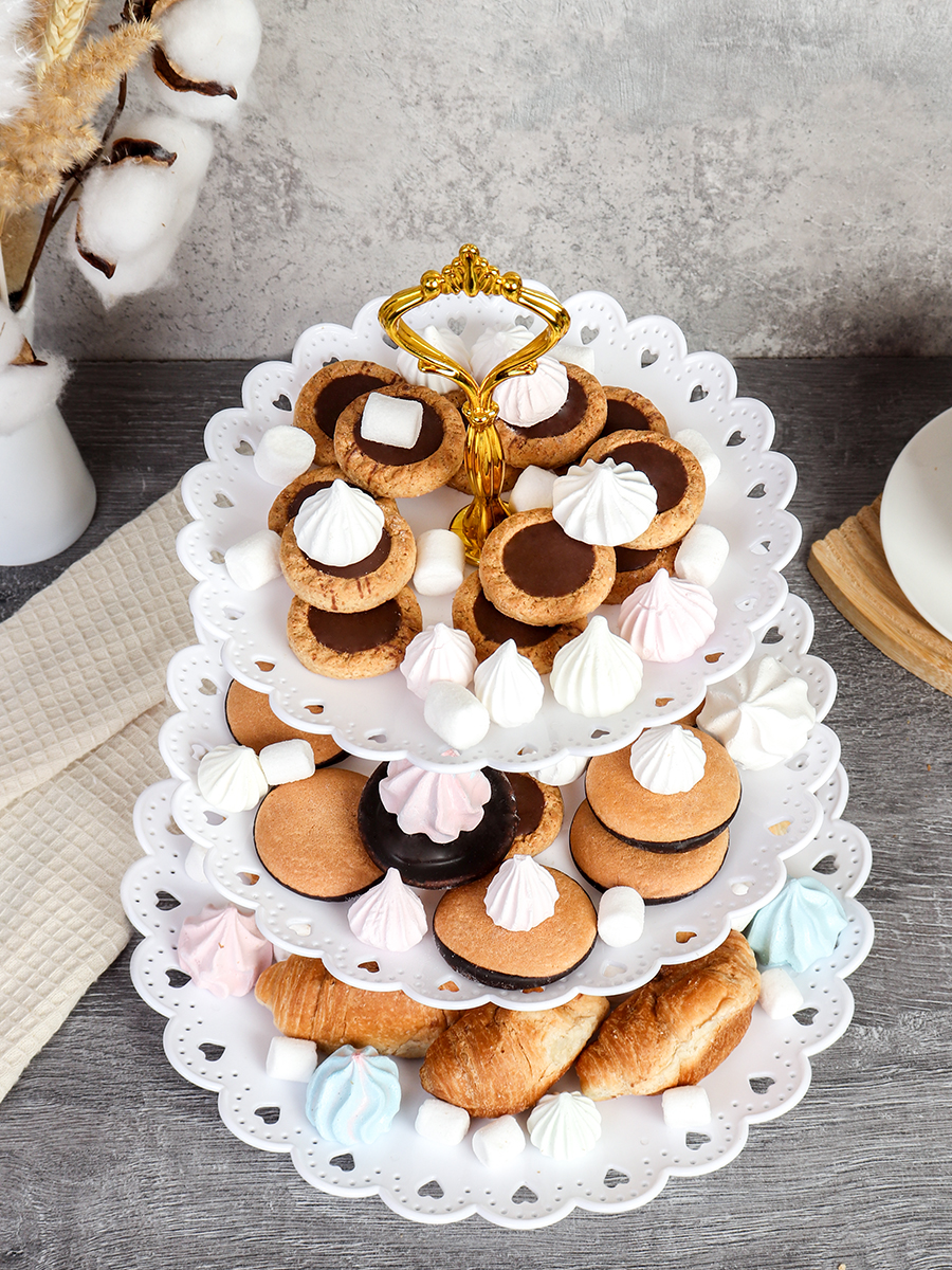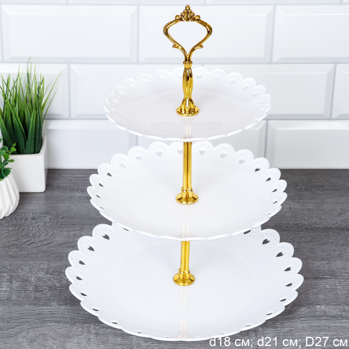 Ваза для сервировки 3-х ярусная 18/22/27 Круг белая / D-1262 /уп 80/ Пластик/689065