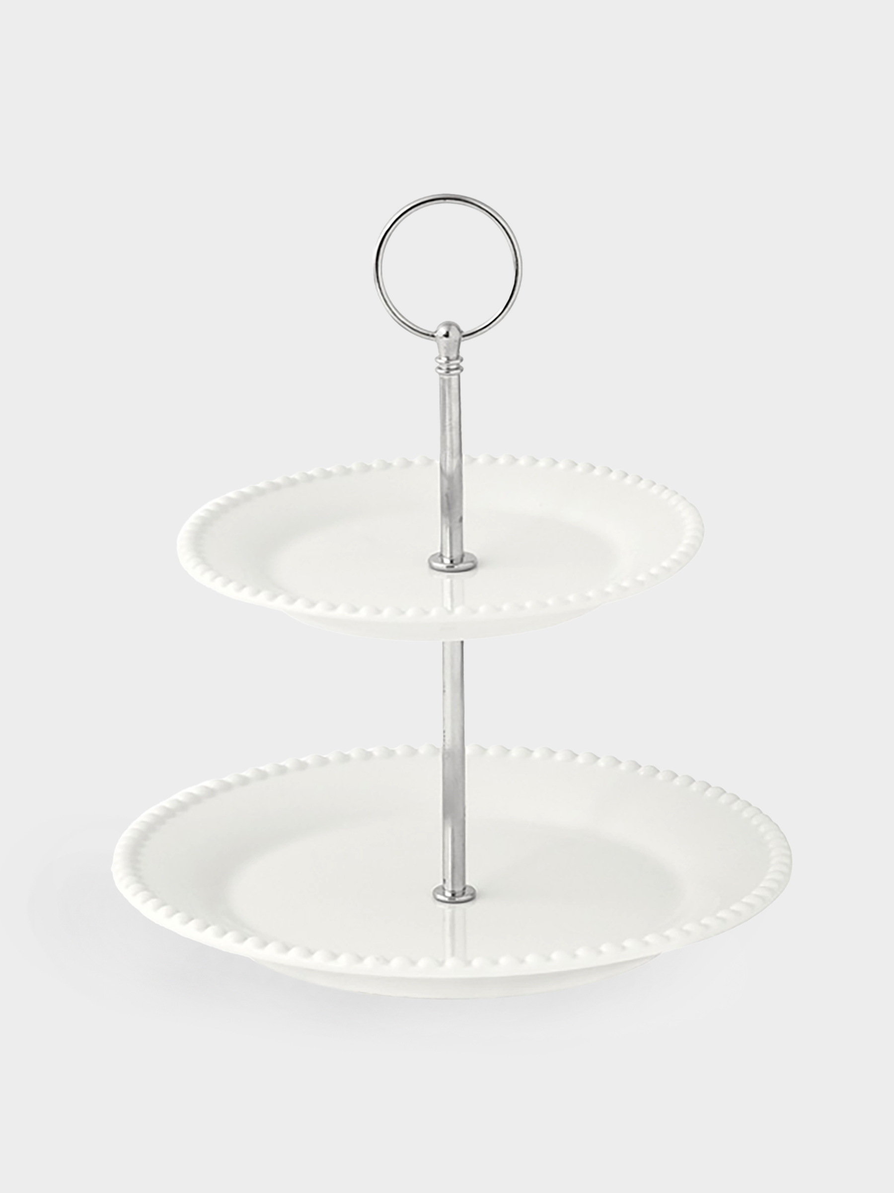 Подставка для пирожных, 16х21/23 см, 2 яруса, фарфор P/металл, белая, Бусины, Tiffany White. Материал: фарфор Рorcelain, металл. Мыть тёплой водой с применением ЖМС. Не использовать в СВЧ и посудомоечной машине.