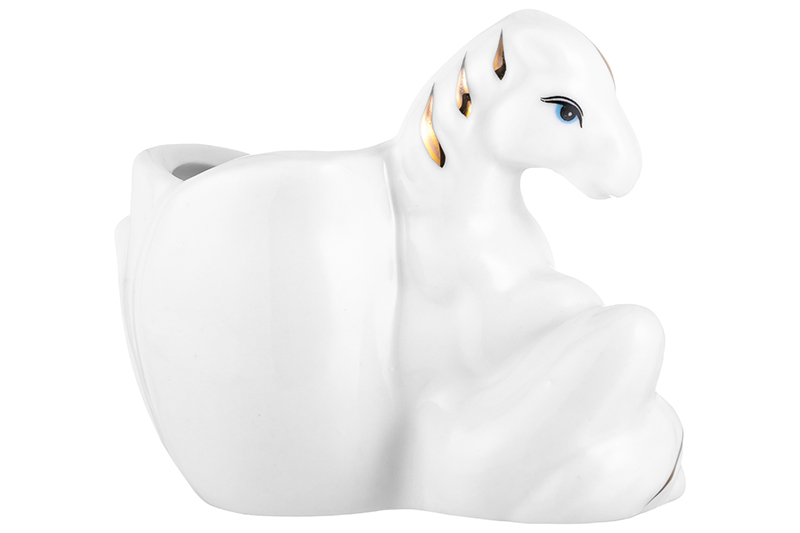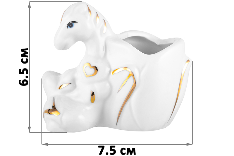 Вазочка для зубочисток 7,5*4,5*6,5 см "Лошадь" белая с золотом, фарфор