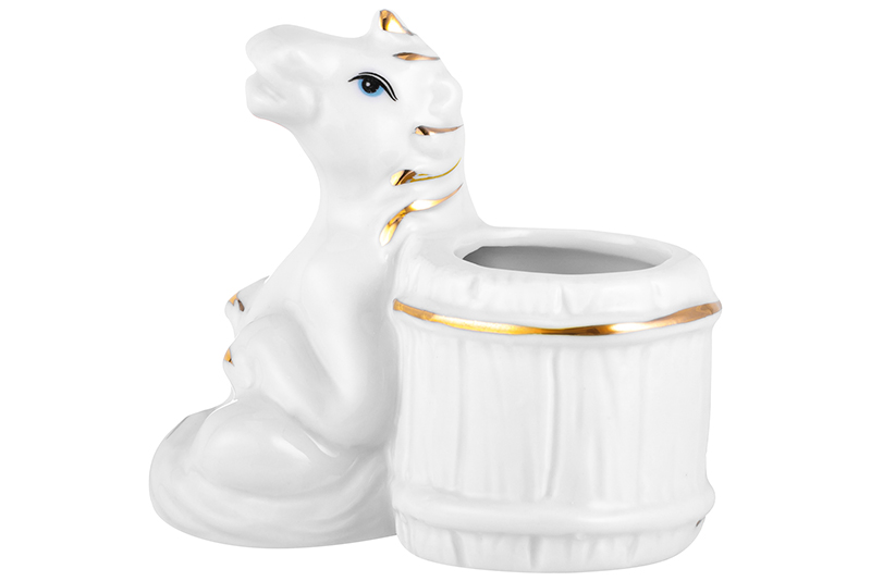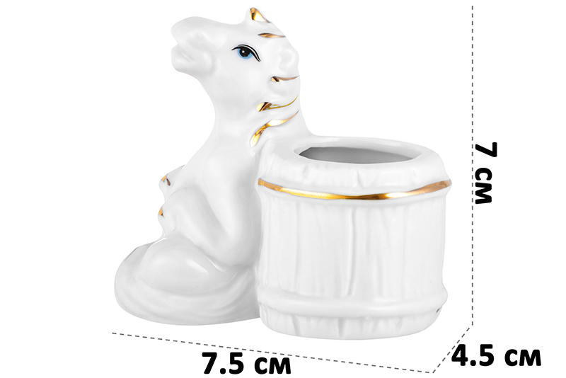 Вазочка для зубочисток 7,5*4,5*7 см "Лошадь" белая с золотом, фарфор