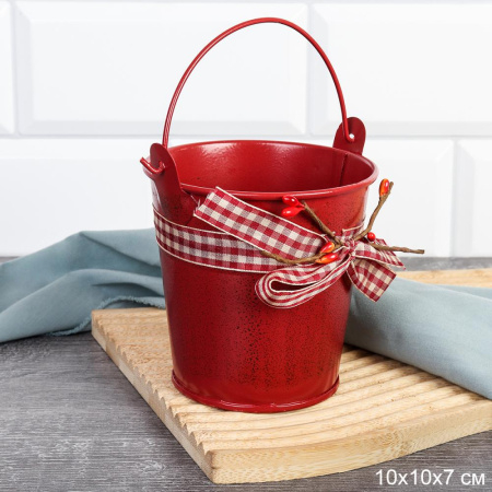 Ведерко для сервировки с эффектом старения 10х11х8,5см/ YW05 /уп 144/ Новогоднее/ Красное