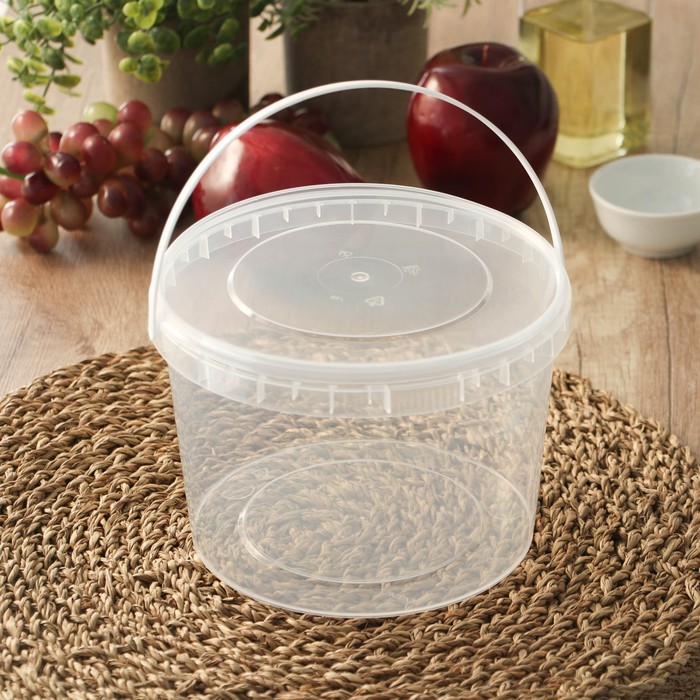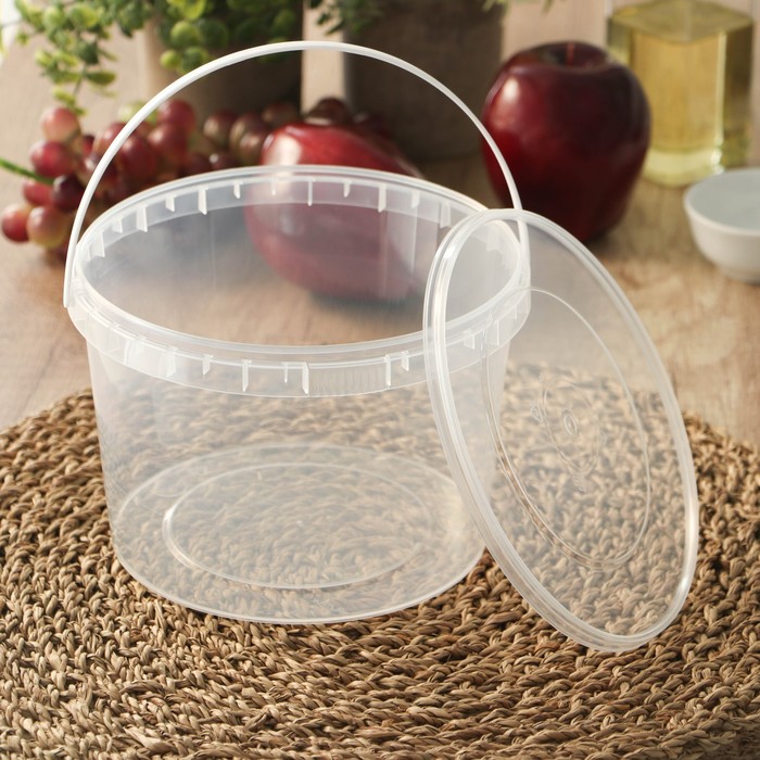 Ведро одноразовое с крышкой, пластик, 2 л, d=17.3 см, пищевое, прозрачное