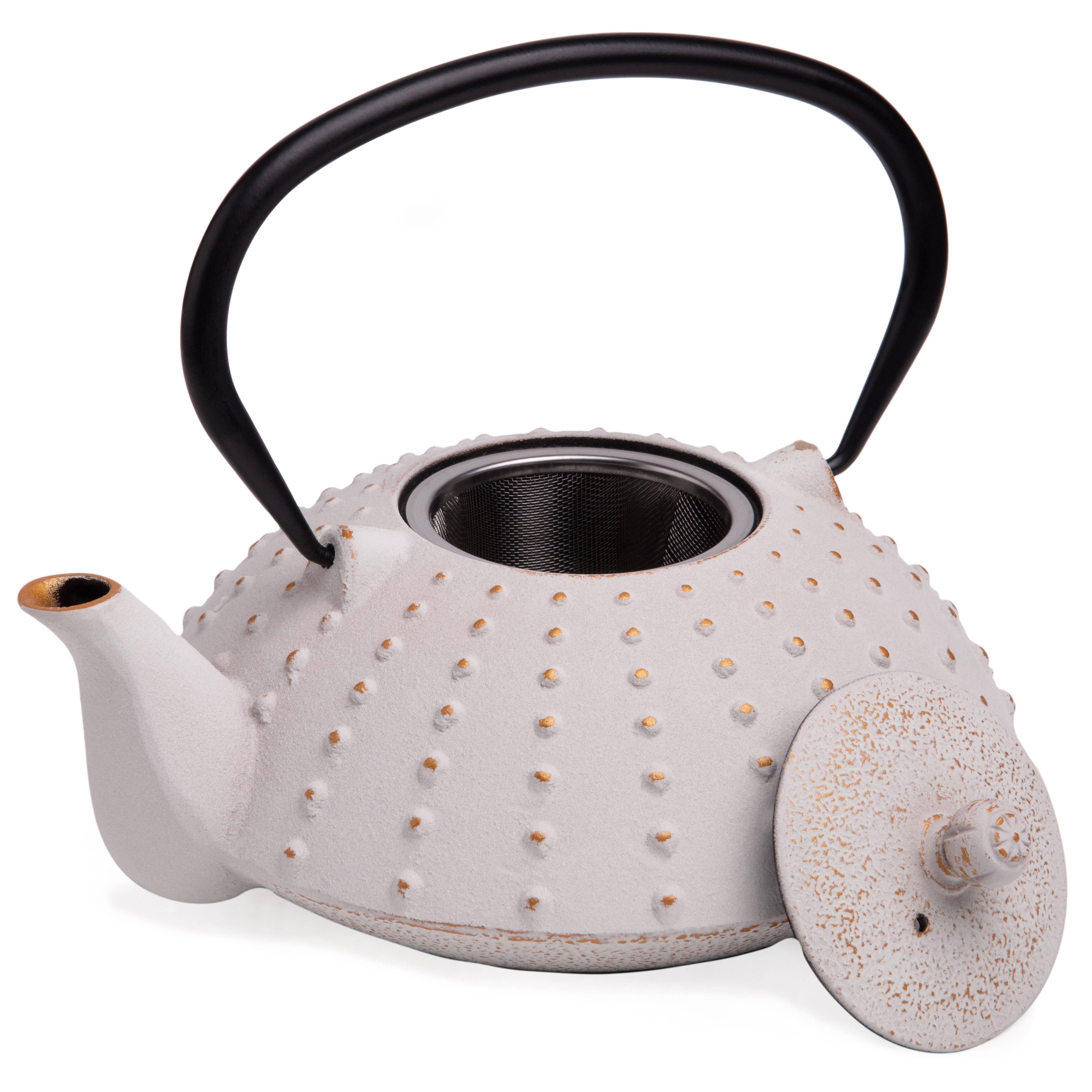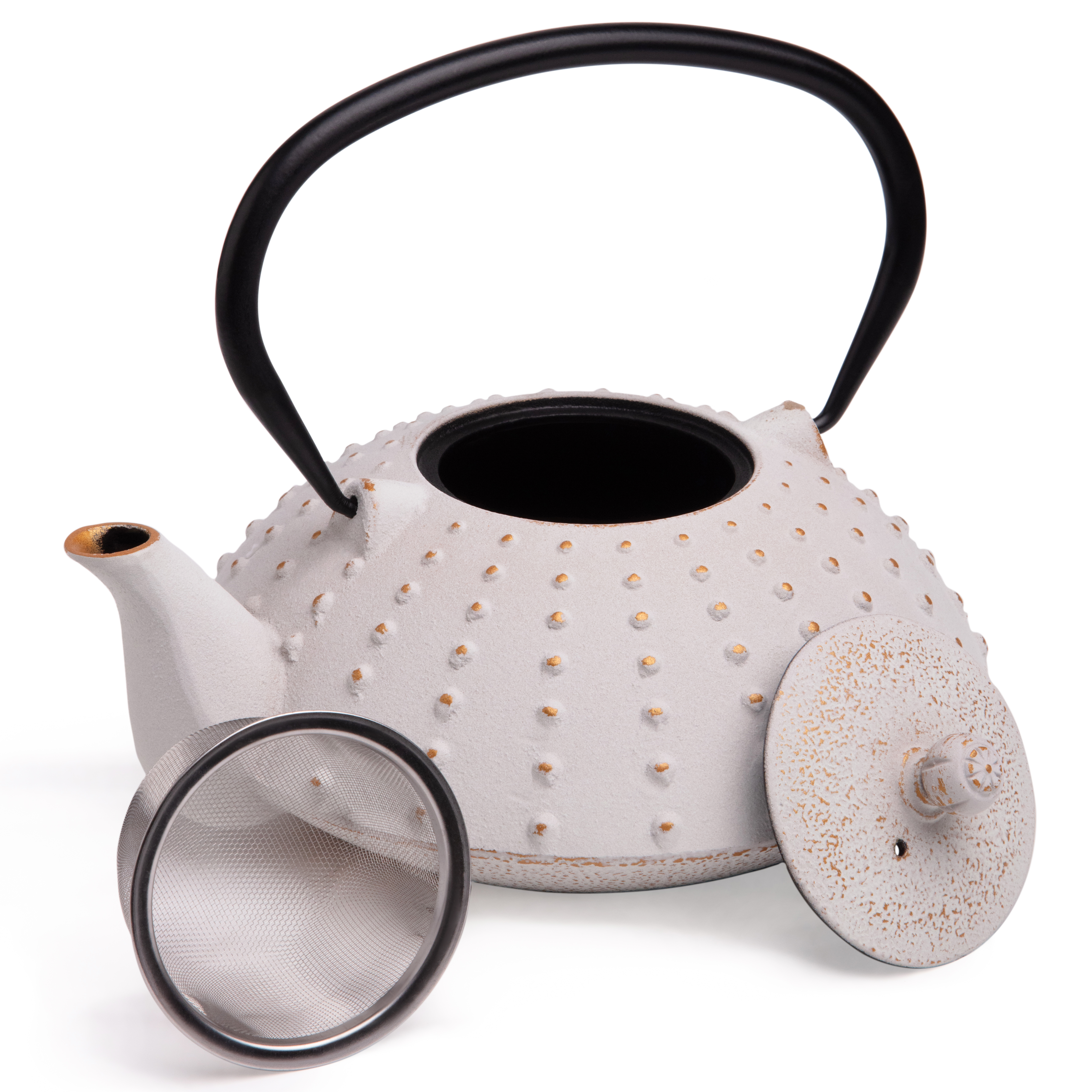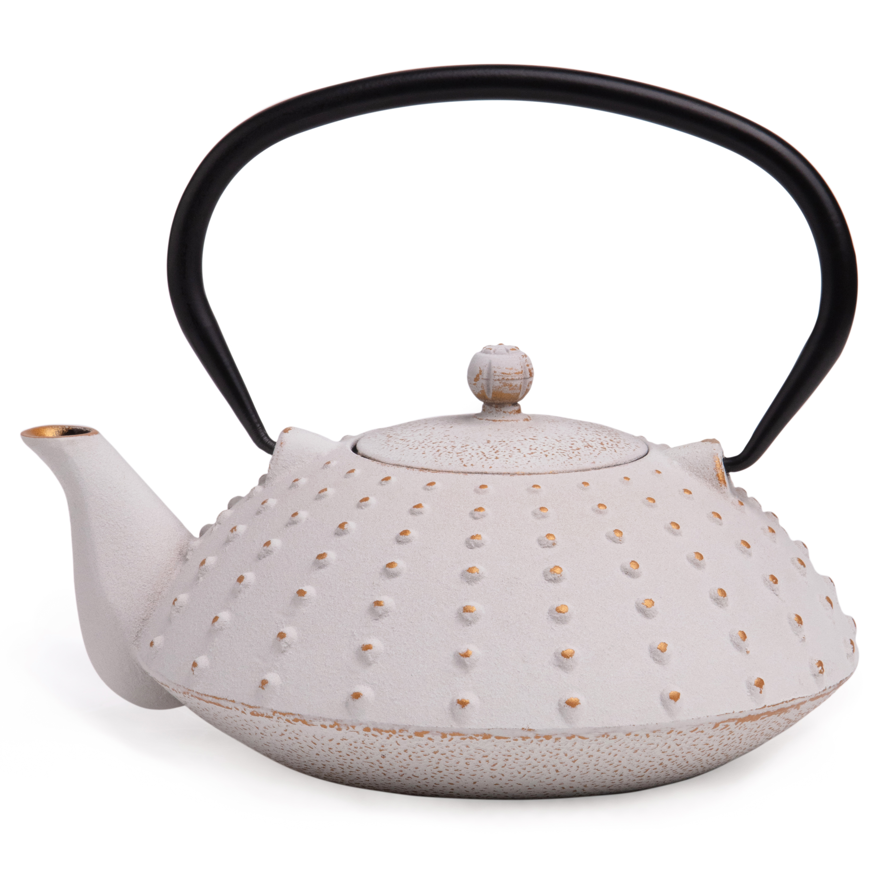 Устройте себе настоящую чайную церемонию с традиционным чугунным заварочным чайником. Внутренняя поверхность чайника покрыта эмалью, которая надежно защищает чайник от ржавчины и препятствует возникновению металлического привкуса у напитка, в связи с чем чайник идеально подойдет для заваривания Вашего любимого пуэра, улуна, черного, травяного или ароматизированного чая, раскрывая всю полноту вкуса напитка. В комплекте идет ситечко, которое надежно удерживает заварку. Не смотря на свои маленькие компактные размеры, этот чайник вмещает в себя 1200 мл, а его презентабельный внешний вид будет выигрышно смотреться на любом празднике.