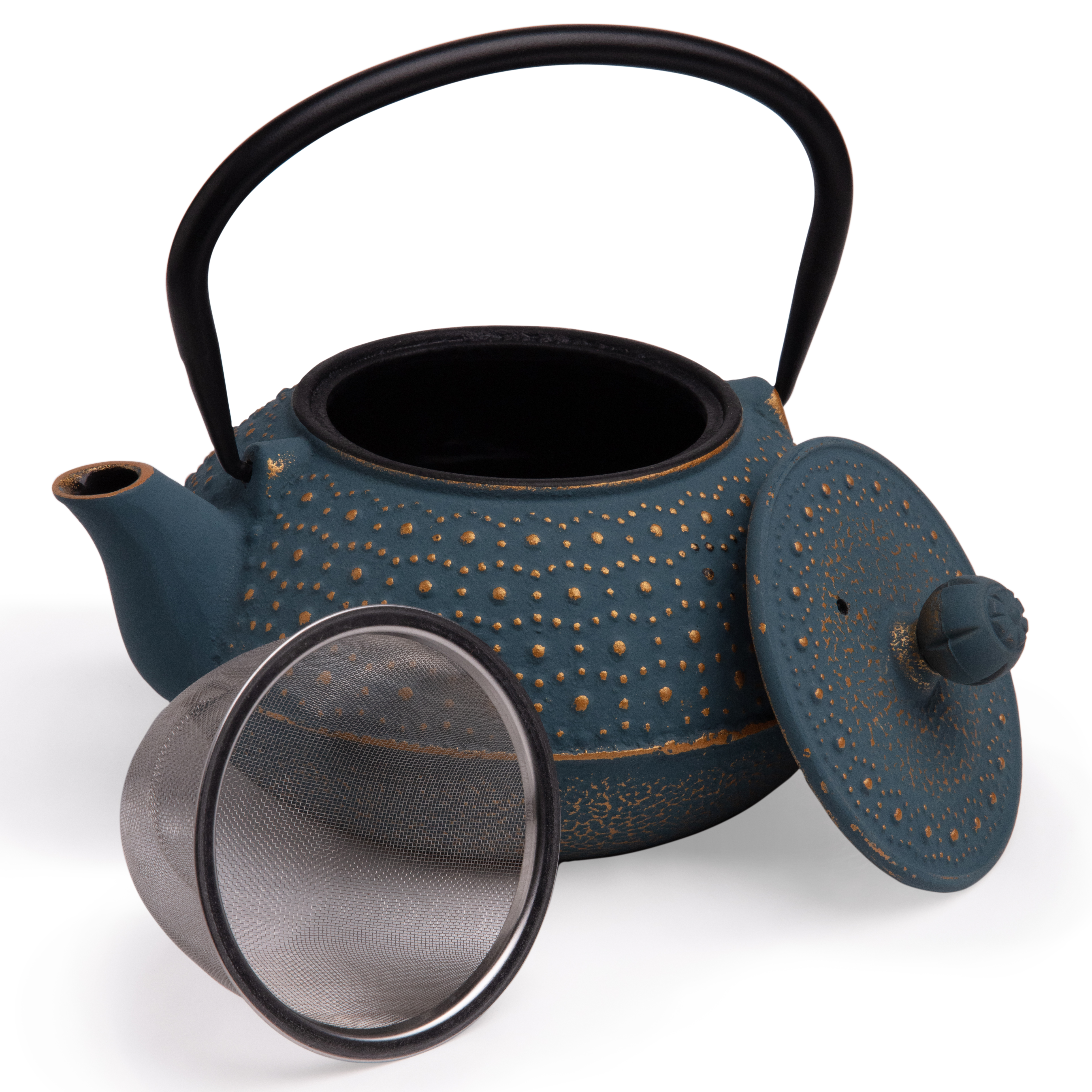 Устройте себе настоящую чайную церемонию с традиционным чугунным заварочным чайником. Внутренняя поверхность чайника покрыта эмалью, которая надежно защищает чайник от ржавчины и препятствует возникновению металлического привкуса у напитка, в связи с чем чайник идеально подойдет для заваривания Вашего любимого пуэра, улуна, черного, травяного или ароматизированного чая, раскрывая всю полноту вкуса напитка. В комплекте идет ситечко, которое надежно удерживает заварку. Не смотря на свои маленькие компактные размеры, этот чайник вмещает в себя 800 мл, а его презентабельный внешний вид будет выигрышно смотреться на любом празднике.