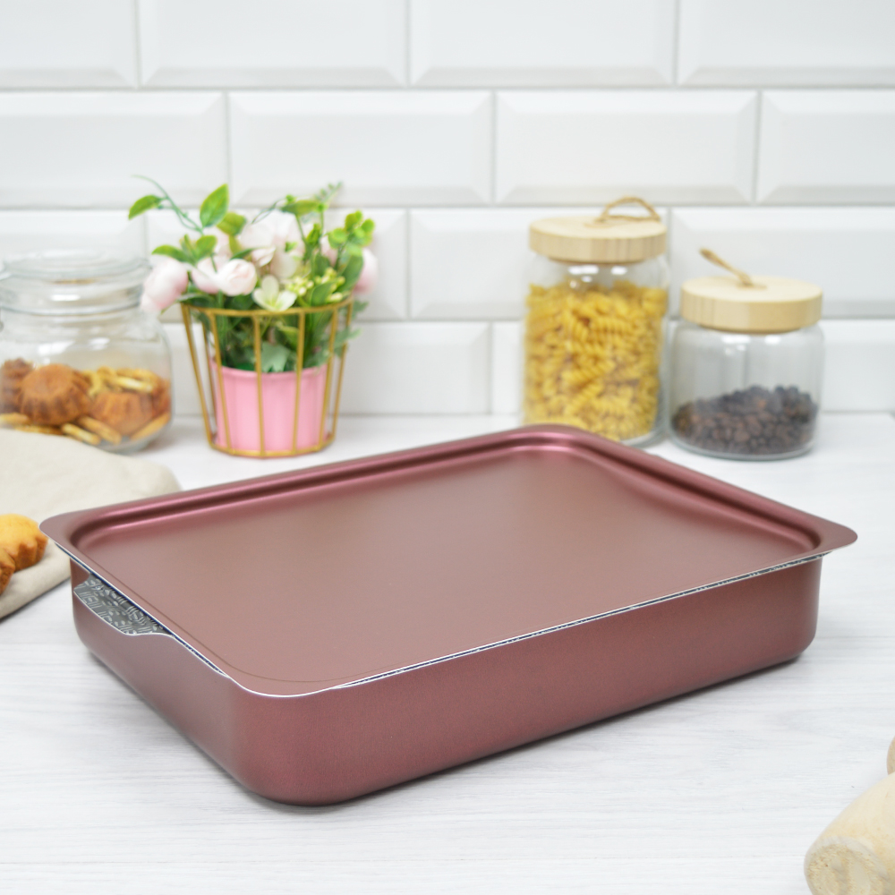 Противень 230*300мм метал. крышка 35318Прочное антипригарное покрытие позволяет быстро отделить выпечку от боковых стенок и дна.Противень быстро и равномерно нагревается, поэтому блюда в нем хорошо пропекаются.Крышка в комплекте.Размер - 23х30х6 см.Заключаем договора по 44 ФЗ, 223 ФЗ