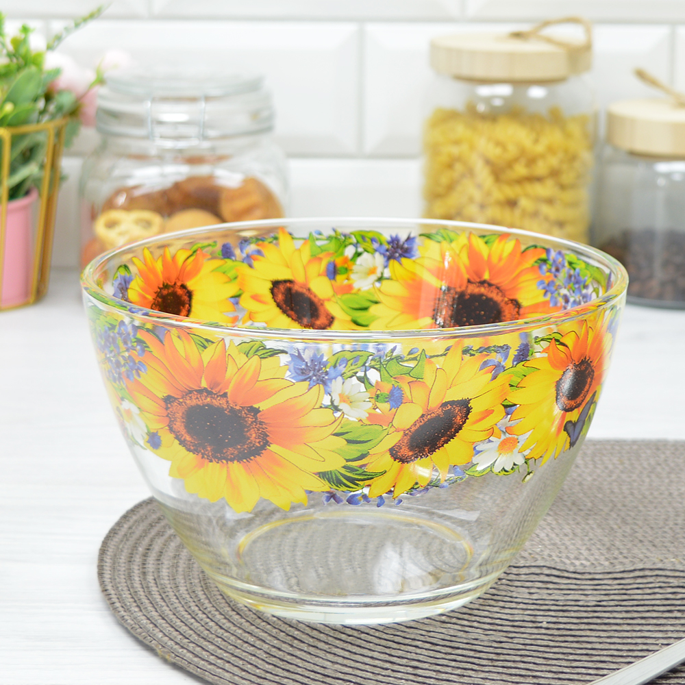Салатник большой "Подсолнухи"Классический салатник подойдет как для ежедневного использования, так и для праздничного стола.Изготовлен из стекла.Объем - 1,2 л.Размер - 18,5х11 см.Заключаем договора по 44 ФЗ, 223 ФЗ