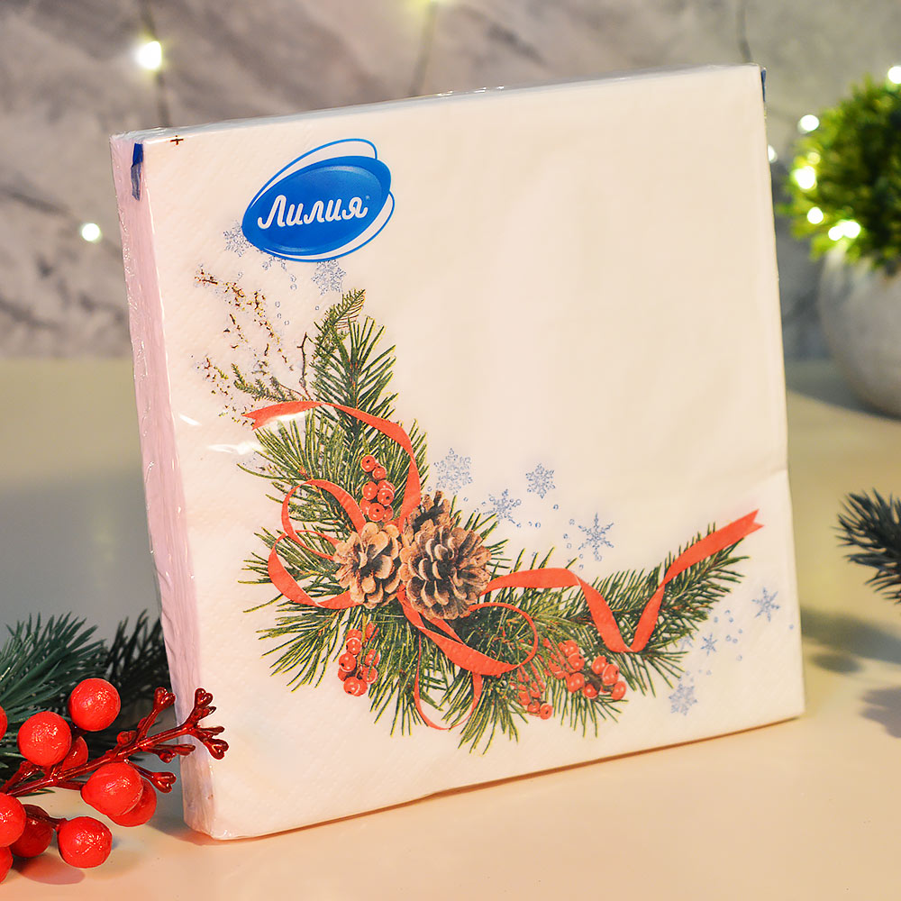 Салфетки 33*33см 20 листов 2-слойные "Хвойная"