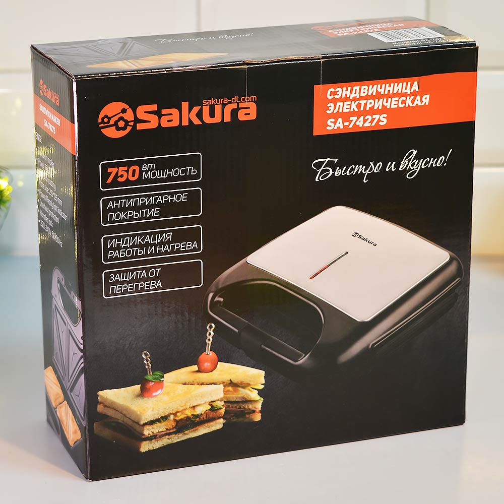 Сэндвичница SA-7427S, 750Вт, 4 сэндвича, с антипригарным покрытием