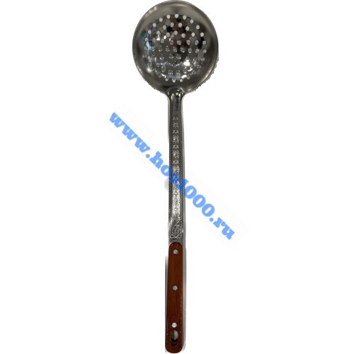 Шумовка металлическая с деревянной ручкой, глубокая, 35см. (средняя.)