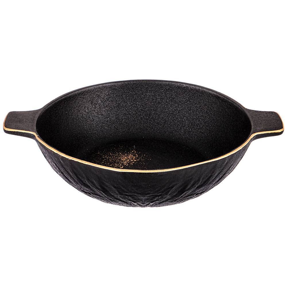 Коллекция "MIDNIGHT GOLD" ТМ BRONCO - это ультрамодная сервировка стола. Черный с золотыми брызгами и окантовкой фарфор. Глубокое матовое покрытие. Каждый предмет коллекции уникален. Тарелки в виде форм для запекания, сковородок, чугунков, элементы поверхности гриль на дне изделий - все это делает Ваш стол неповторимым! Посуда прошла сертификацию. Безопасна для контакта с пищевыми продуктами. С осторожностью использовать изделия в посудомоечной машине и микроволновой печи по причине возможного повреждения золотого декоративного покрытия. Рекомендуется применять мягкие средства для мытья в посудомоечной машине.