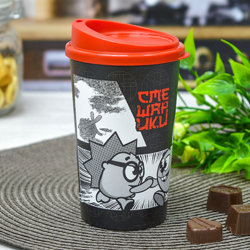Стакан 400мл с крышкой "Смешарики" (черный)