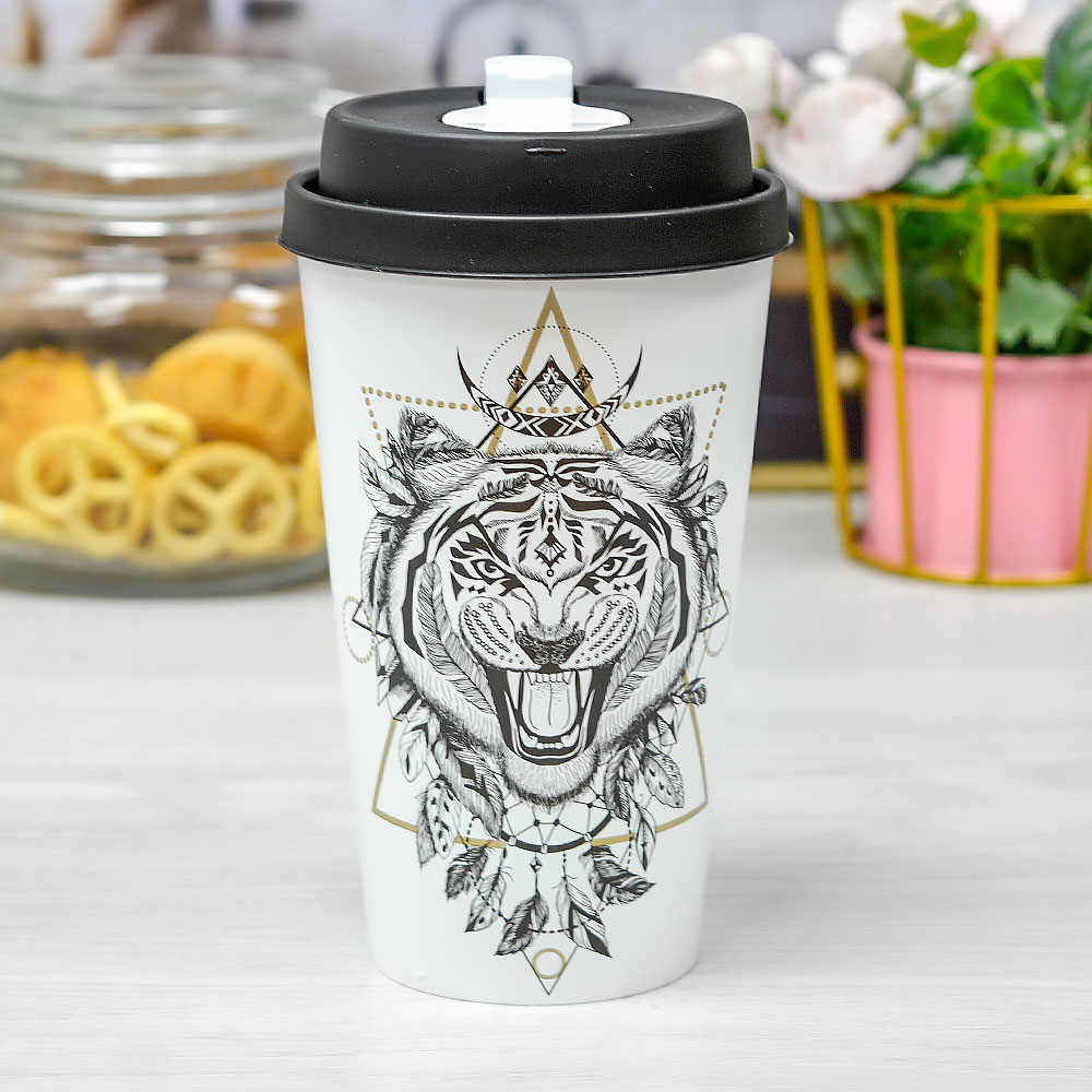 Стакан 550мл с крышкой, с клапаном "Графика", черный