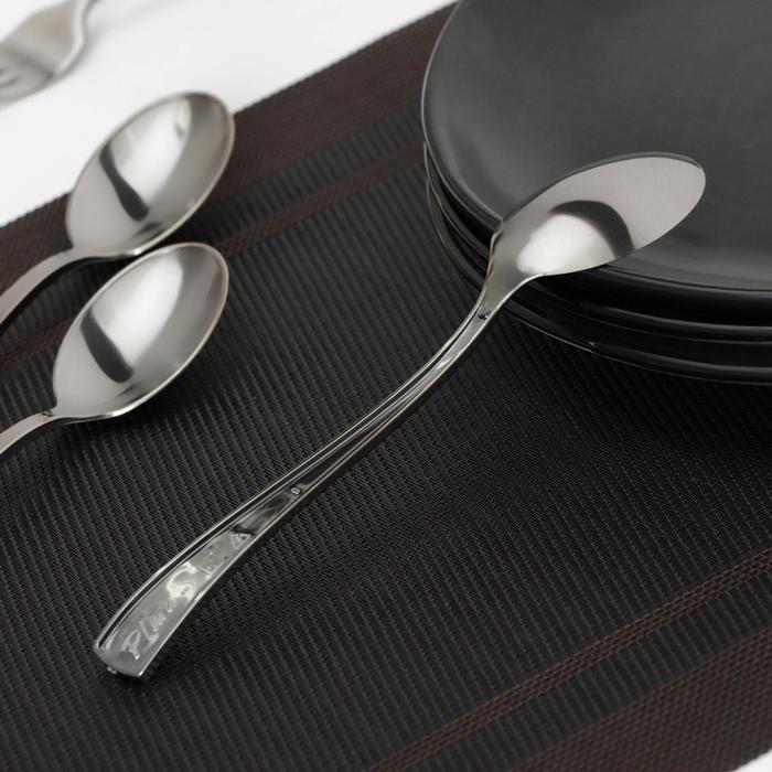 Ложка одноразовая, пластик,17.5 см, столовая, серебристая