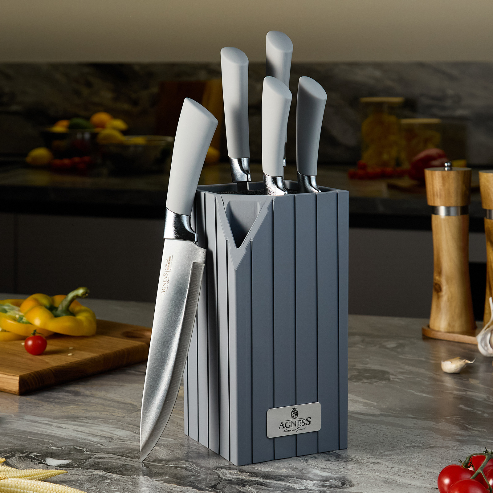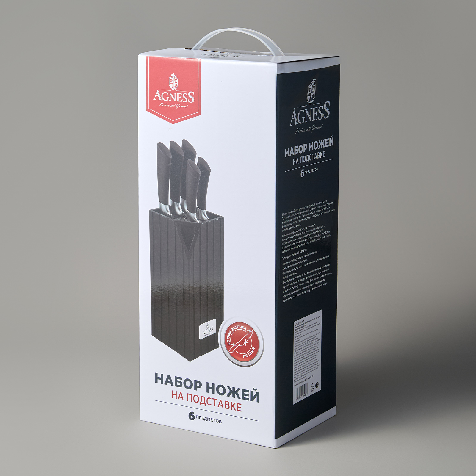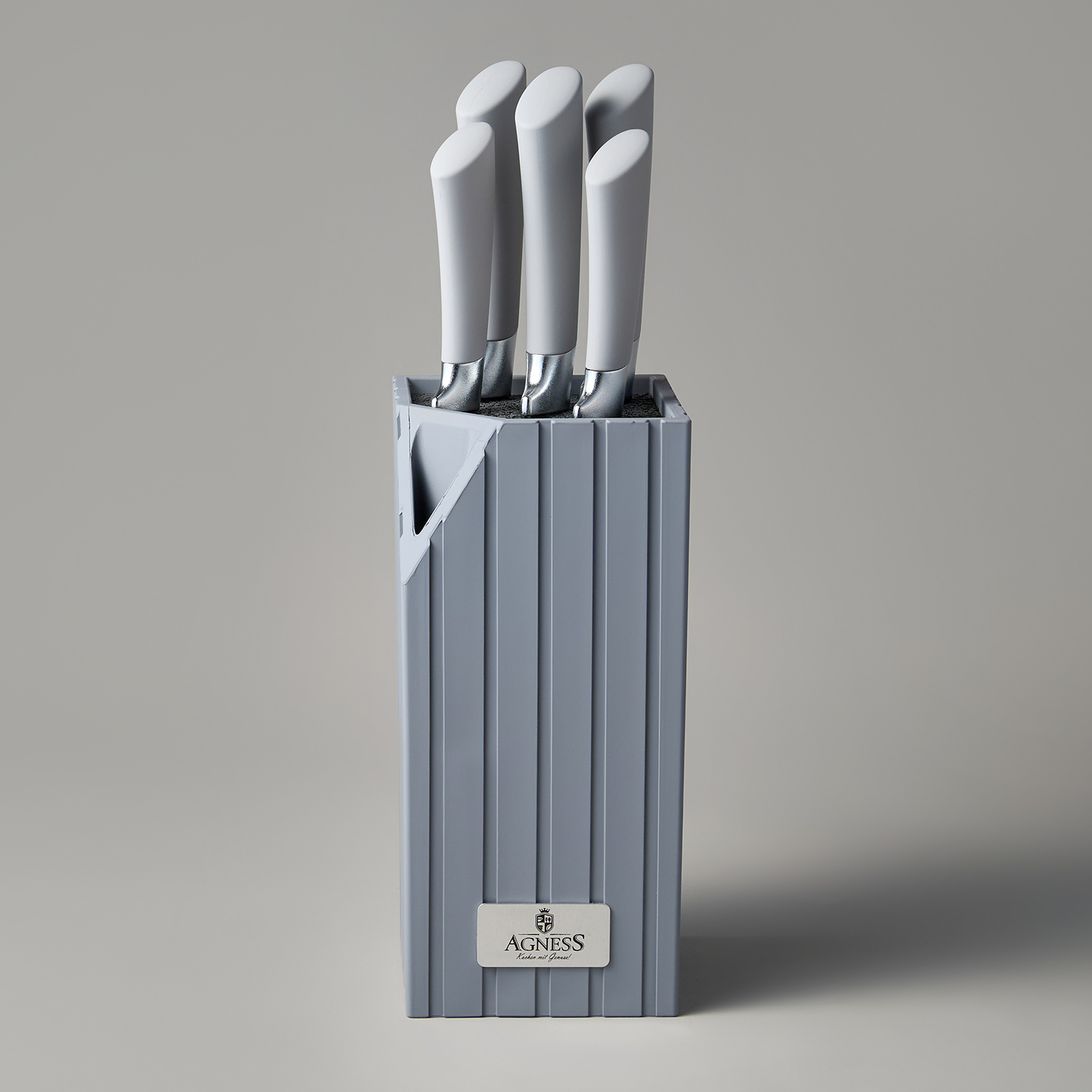НАБОР НОЖЕЙ AGNESS НА ПЛАСТИКОВОЙ ПОДСТАВКЕ, 6 ПРЕДМЕТОВ
