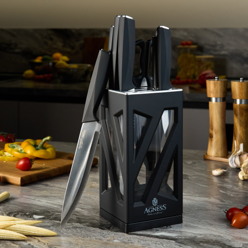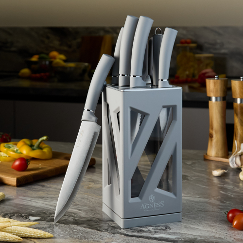 НАБОР НОЖЕЙ AGNESS НЖС НА ПЛАСТИКОВОЙ ВРАЩАЮЩЕЙСЯ ПОДСТАВКЕ 8 ПР.