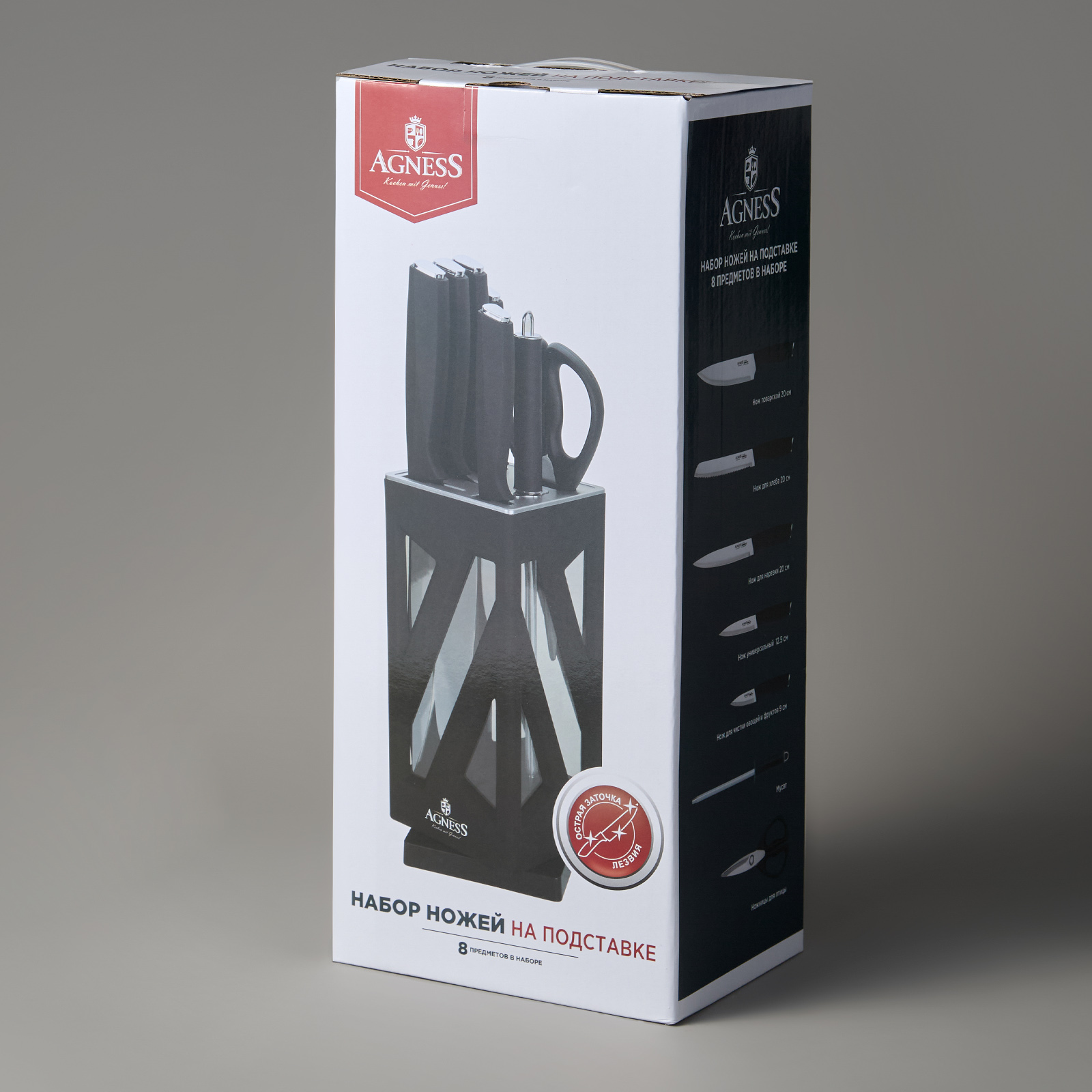 Нож - главный инструмент на кухне, а вернее ножи, т.к. даже самый лучший нож не сможет справиться со всем многообразием задач. Выбирая набор ножей AGNESS - Вы приобретаете комплект самых необходимых и чаще всего используемых ножей. Преимущества ножей AGNESS: