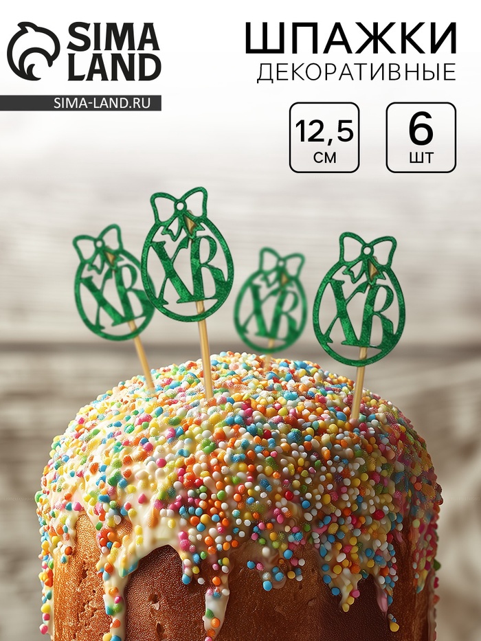 Шпажки на пасху, 12.5 см, зелёная, набор 6 шт.