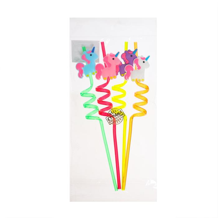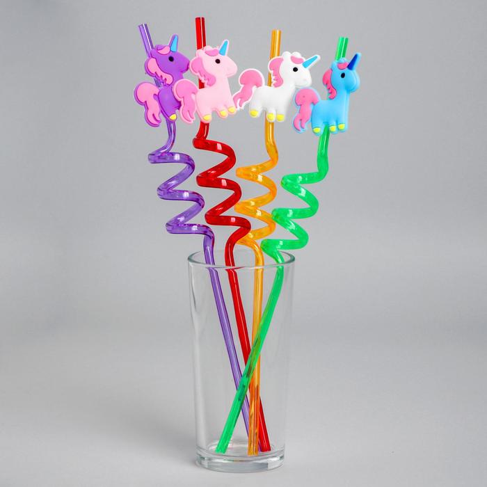 Трубочка из пластика «Единорог», набор 4 шт., МИКС