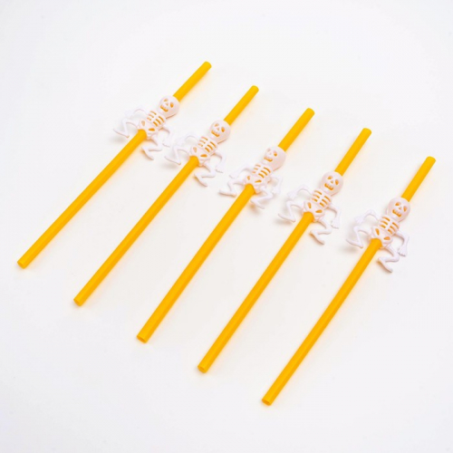 Трубочки для коктейля «Скелет», оранжевая, набор 5 шт.
