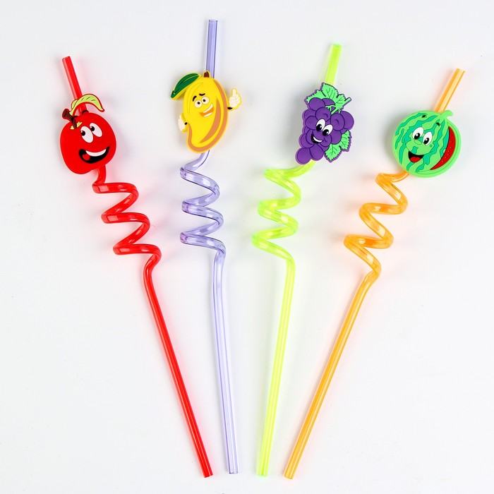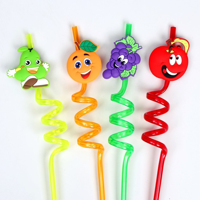 Трубочки для коктейля «Весёлые фрукты», набор 4 шт., МИКС