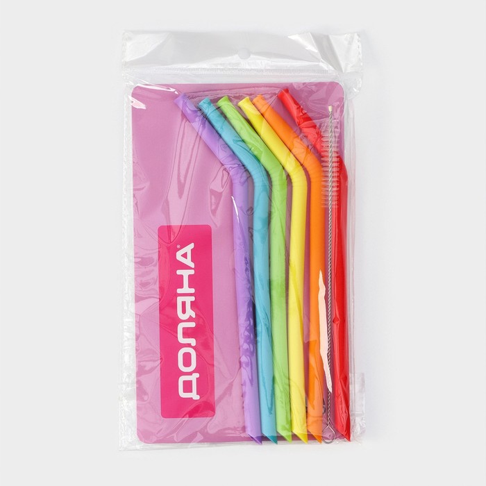 Трубочки силиконовые для напитков Доляна, 6 трубочек (1×21.5 см), ёршик