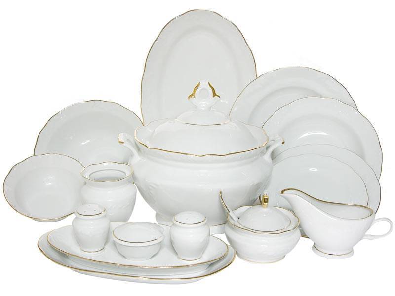 Столовый сервиз белый с золотом на 6 персон 42прСостав набора:Ваза для супа 3000 см3 1 штБлюдо овальное 315 мм 1 штБлюдо для хлеба 270 мм 1 штСеледочница 250 мм 1 штСалфетница 100 мм 1 штПодливочник 200 см3 1 штХренница 230 см3 1 штСалатник 1000 см3 1 штСалатник 300 см3 6 штТарелка мелкая 240 мм 6 штТарелка глубокая 220 мм 6 штТарелка мелкая 200 мм 6 штТарелка мелкая 175 мм 6 штГорчичница 60 см3 1 штПеречница 80 см3 2 штЛожечка для хрена 105 мм 1 штЗаключаем договора по 44 ФЗ, 223 ФЗ