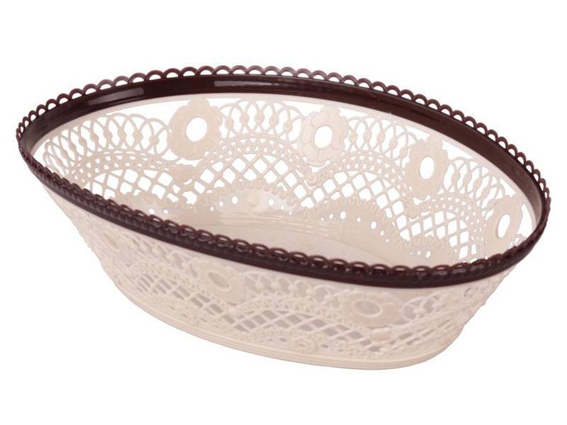 Сухарница Кружево 91275♦ Цвет: слоновая кость, коричневый♦ Изготовлена из высококачественного пищевого пластика♦ Декорирована кружевным узоромЗаключаем договора по 44 ФЗ, 223 ФЗ