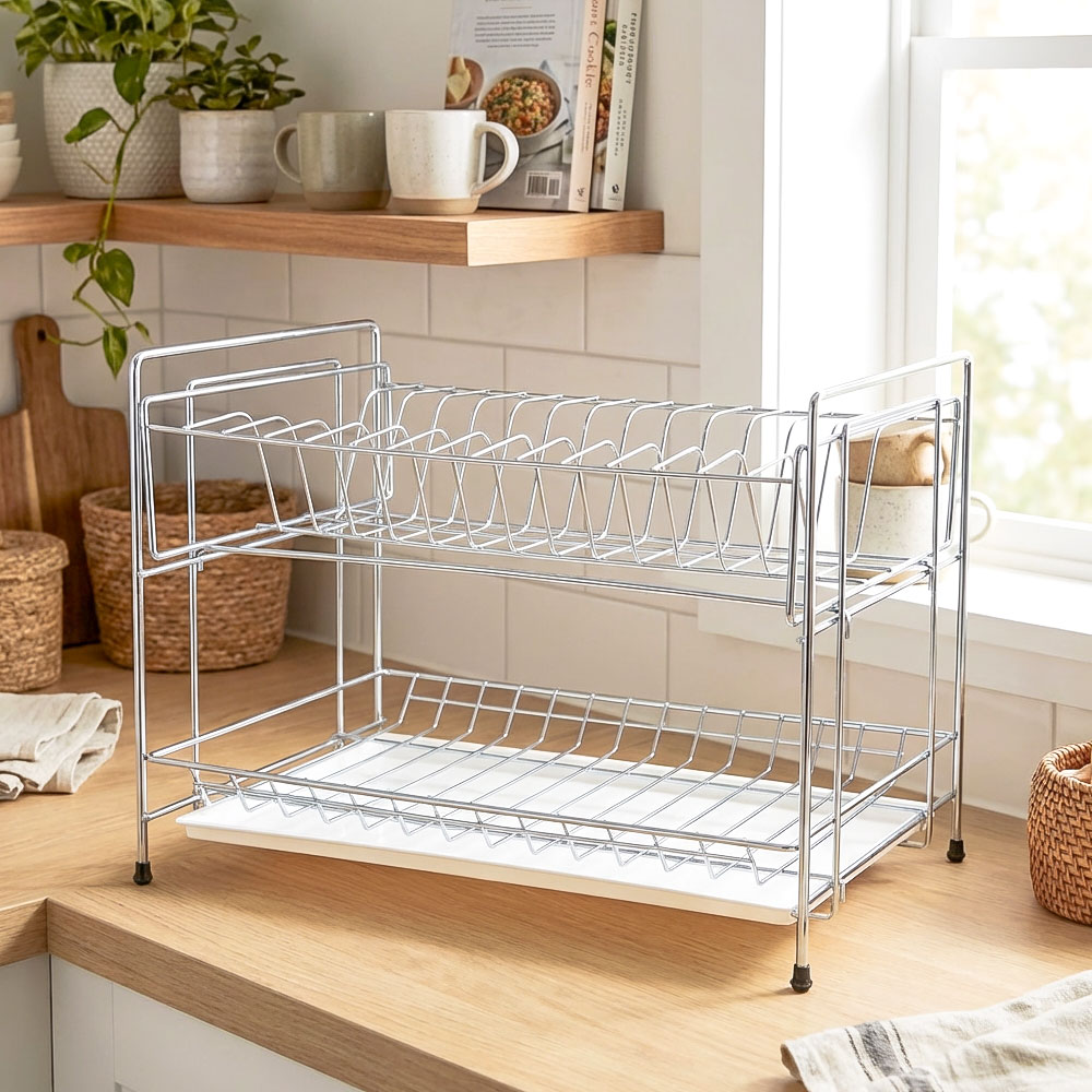 Сушилка для посуды 2-х ярусная разборная с поддоном 390*236*300мм, хром