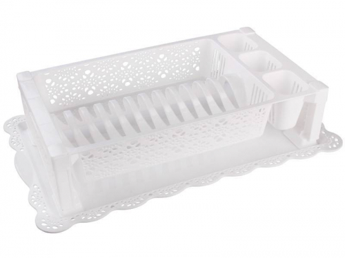 Сушилка для посуды "Кружево" 91573 белая♦ Предназначена для сушки посуды и столовых приборов♦ Удобный поддон♦ Декорирована кружевным узоромСушилка разделена на несколько секций: ♦ Решётка для тарелок различного размера ♦ Три глубоких отдела для ложек, вилок и ножейЗаключаем договора по 44 ФЗ, 223 ФЗ