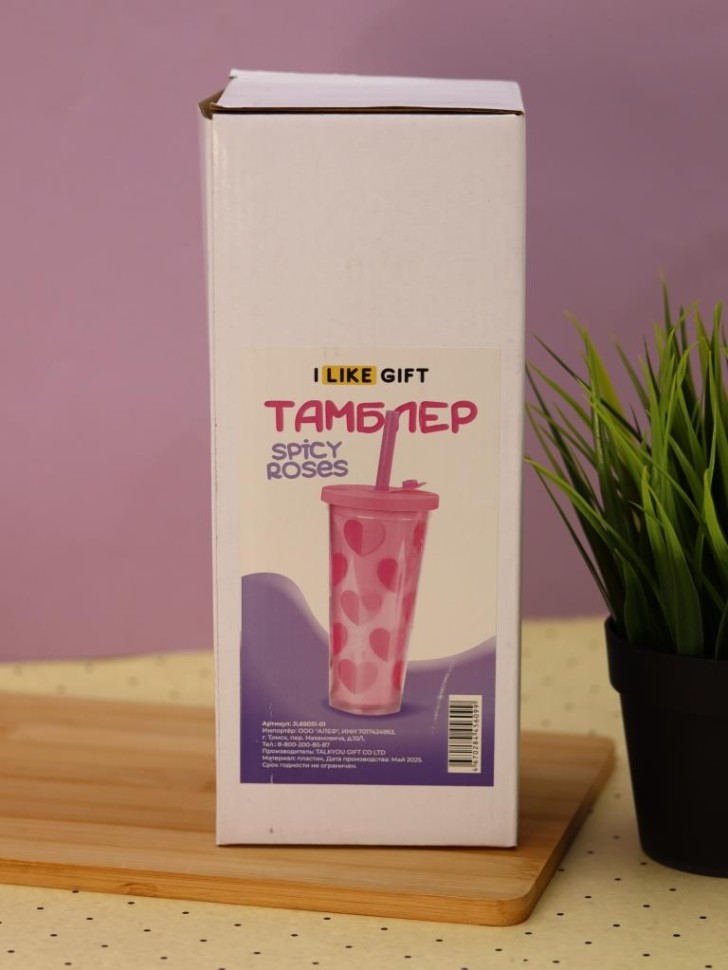 Тамблер iLikeGift "Double heart", pink (650 мл)