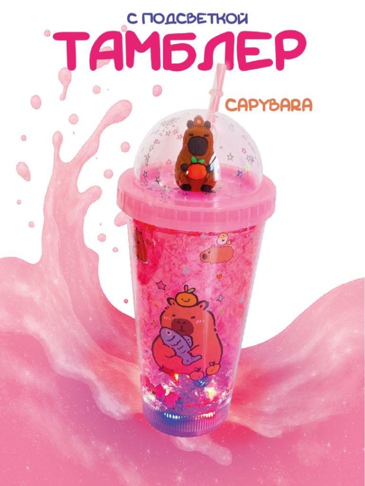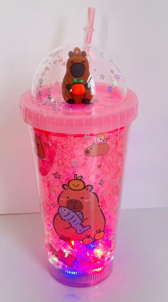 Тамблер с подсветкой iLikeGift "Capybara burger", red (450 мл)