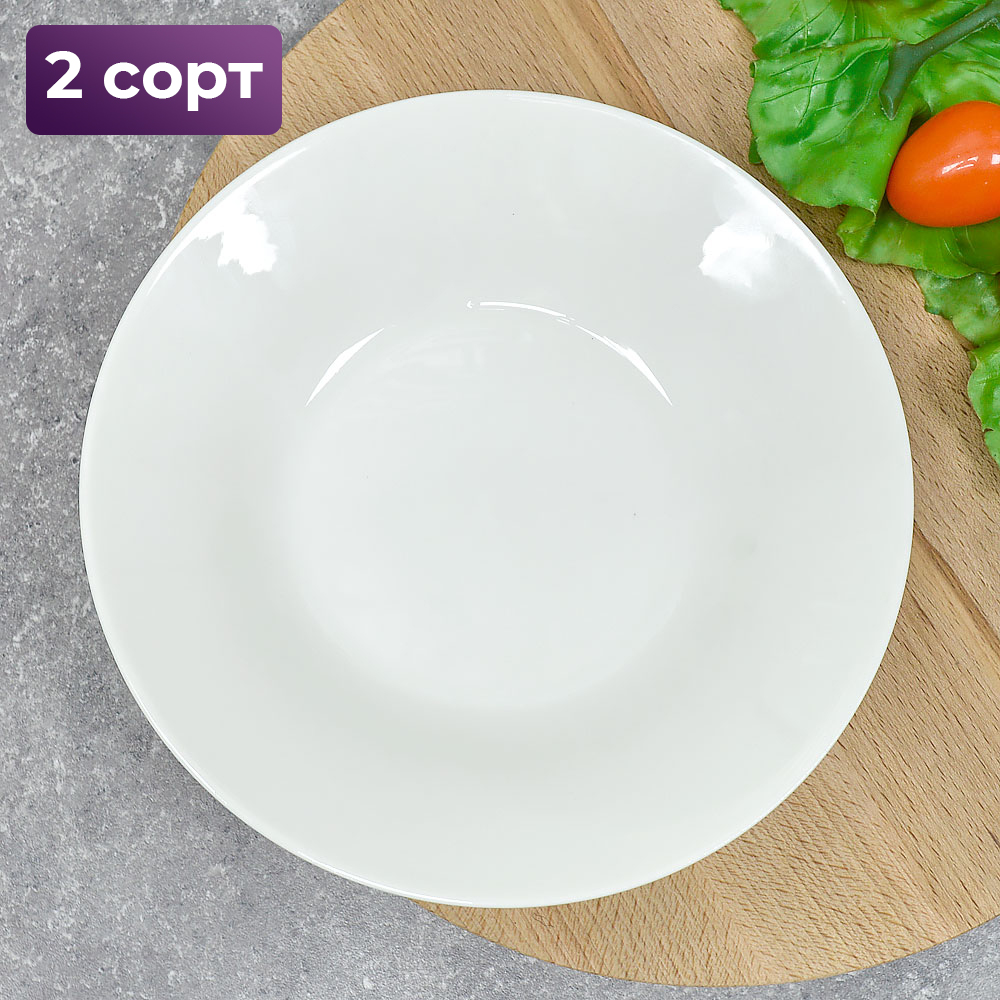Тарелка 200мм глубокая 250мл, без деколи, фарфор, 2 сорт