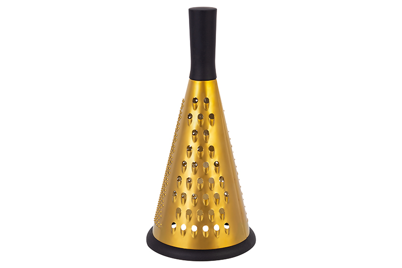 Трёхсторонняя круглая тёрка 12х12х26,5 см имеет 3 рабочие поверхности для разных задач. Шинкуйте, натирайте и измельчайте разные продукты, от овощей и фруктов до сыра и имбиря. Это кухонный инвентарь фигурной формы, который станет незаменимым помощником в приготовлении супа и готовки любых других блюд. Благодаря стильному дизайну и красивому золотистому цвету станет украшением вашей кухни! Используйте её как сыротёрку и овощетёрку. Это универсальное приспособление поможет подготовить шоколадную крошку для десерта, а также приготовить корейскую морковь или мелко натереть чеснок, капусту и картофель. Аксессуар подойдёт для нарезки мелких ингредиентов для салатов. Создавайте кулинарные шедевры из шоколада и кокосовой стружки! Многофункциональная тёрка устойчива и не скользит благодаря прорезиненному основанию. Основание съёмное: легко отмывается после использования. Тёрку удобно держать благодаря ручке длиной 7,5 см. Не подходит для использования в посудомоечной машине. Станет удобным дополнением вашей кухни и помощником в приготовлении множества вкусных блюд! Золотая тёрка — это не просто удобный инструмент, она станет полезным подарком для любой хозяйки! В коллекции бренда Elan Gallery можно найти красивую посуду, кухонную утварь и товары для дома. Здесь есть любые мелочи и кухонные принадлежности для создания комфорта в квартире и на даче! /
