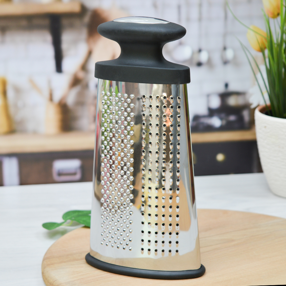 Терка 2-х гранная овальная, 3 типа шинковки "Idea", 12*6*23,7см выполнена из безопасных материалов, не окисляется при длительном соприкосновении с продуктами и легко отмывается.2 рабочие грани терки позволят измельчить продукт до необходимого размера.Высота - 24 см.Заключаем договора по 44 ФЗ, 223 ФЗ