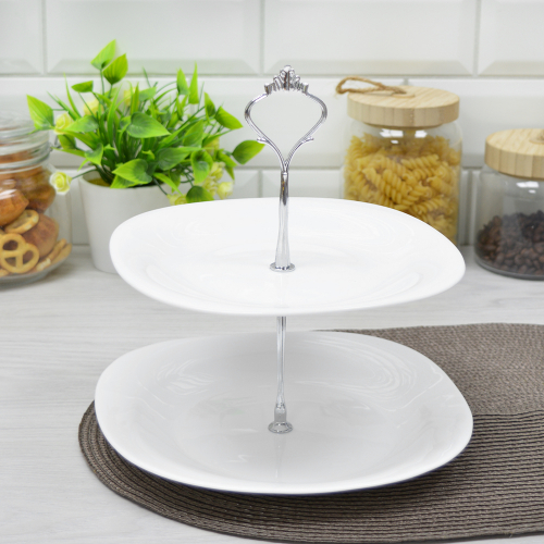 Фруктовница 3-х ярусная "Square soft" стеклокерамика (99273)