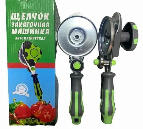 Машинка закаточная Щелчок №1 Москвичка Автомат, закатка для банок, закрутка для банок, заготовки на зиму, консервирование. Машинка закаточная «Щелчок» от марки «Москвичка исконно хороша» предназначена для герметичной укупорки стеклянных банок с венчиком горловины типа I-82, металлическими крышками при консервировании в домашних условиях.  Укупоривание происходит за счет оборотов рукояти с подшипником (роликом) вокруг крышки до упора при этом подача подшипника (ролика) осуществляется автоматически. По окончанию укупоривания машинка автоматически отщелкивает, что не требует приведения закаточной машинки в исходное положение, что является преимуществом данной модели.