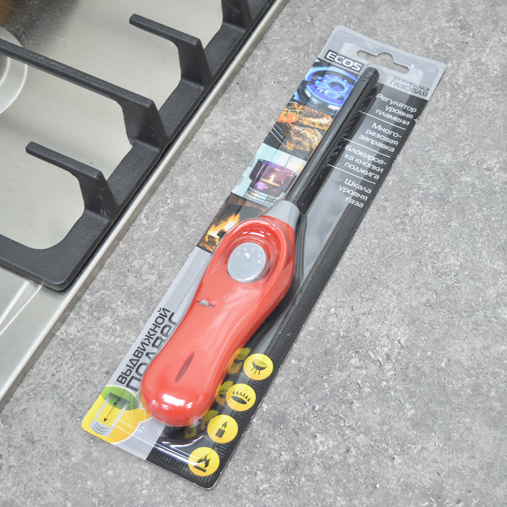 Зажигалка газовая ECOS GL-001RУниверсальная газовая зажигалка для газовой плиты, барбекю, свеч, камина. Регулятор уровня пламени, многоразовая заправка сжиженным газом (пропан, бутан), блокировка кнопки поджига.Заключаем договора по 44 ФЗ, 223 ФЗ