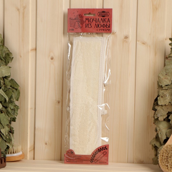 Мочалка из люфы, лента с сегментами, с хлопком, 70,5х8,4 см