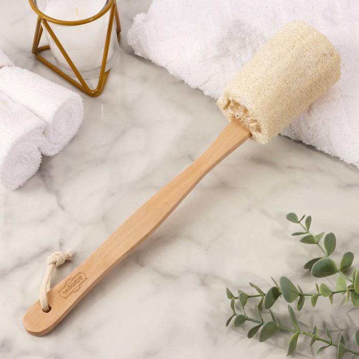 Мочалка с ручкой, люфа, гладкая, 33х7 см
