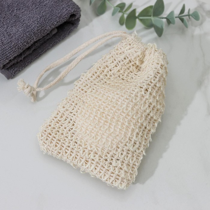 Мочалка-мешочек из сизаля Доляна, для вкладывания мыла, 10×14 см, бежевая
