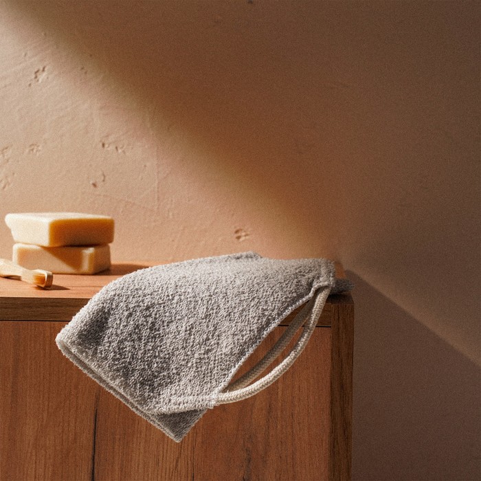* Натуральные материалы: сочетание хлопка и полиэстера обеспечивает мягкое, но эффективное очищение кожи, деликатно устраняя ороговевшие клетки и стимулируя кровообращение.