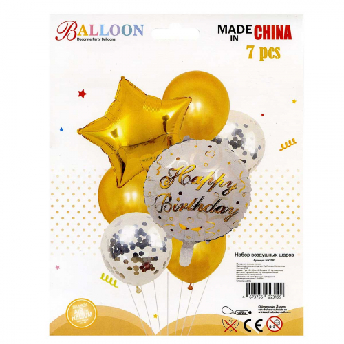 Набор воздушных шаров 7шт ГОЛУБОЙ (2шара фольгированные+5шаров латекс) NA2586 (600)