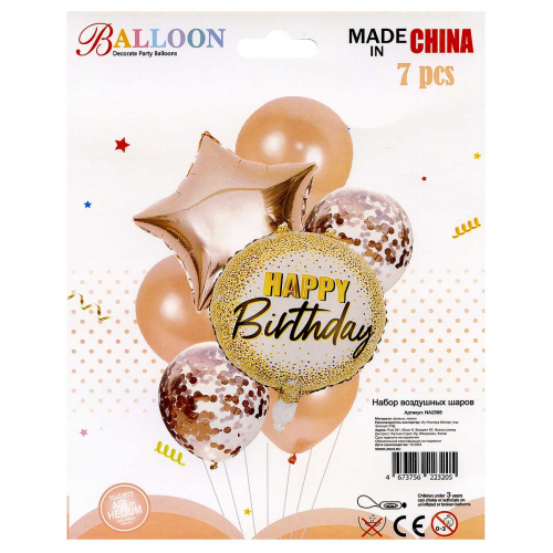 Набор воздушных шаров 7шт ЗОЛОТОЙ (2шара фольгированные+5шаров латекс) NA2587 (600)
