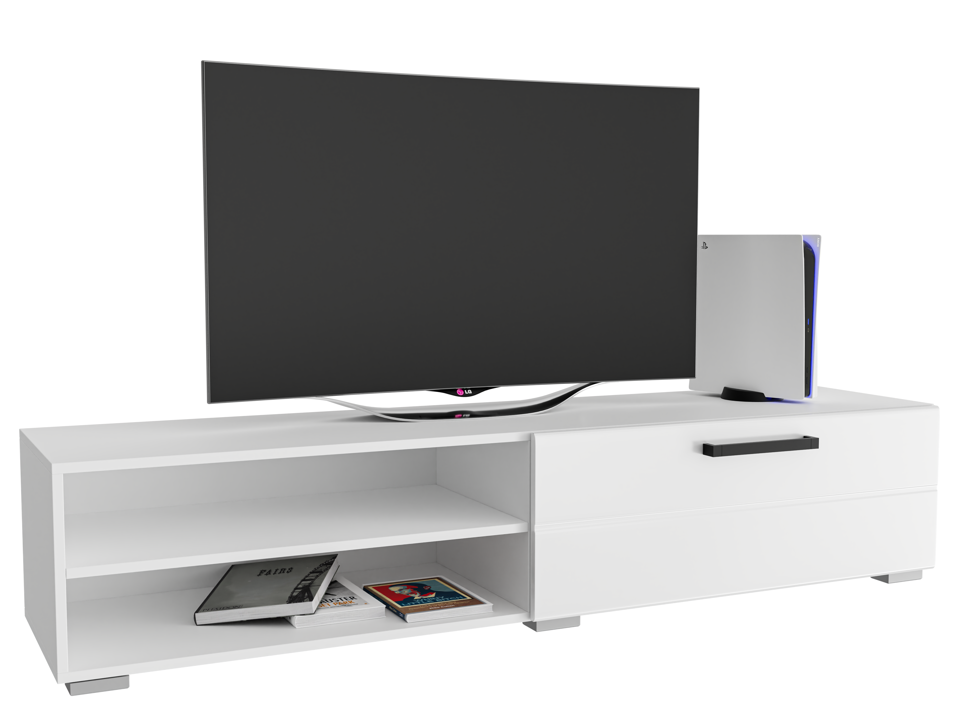 -Тумба под ТВ Ева белый/белый глянец (1680x350x420) ////37 кг