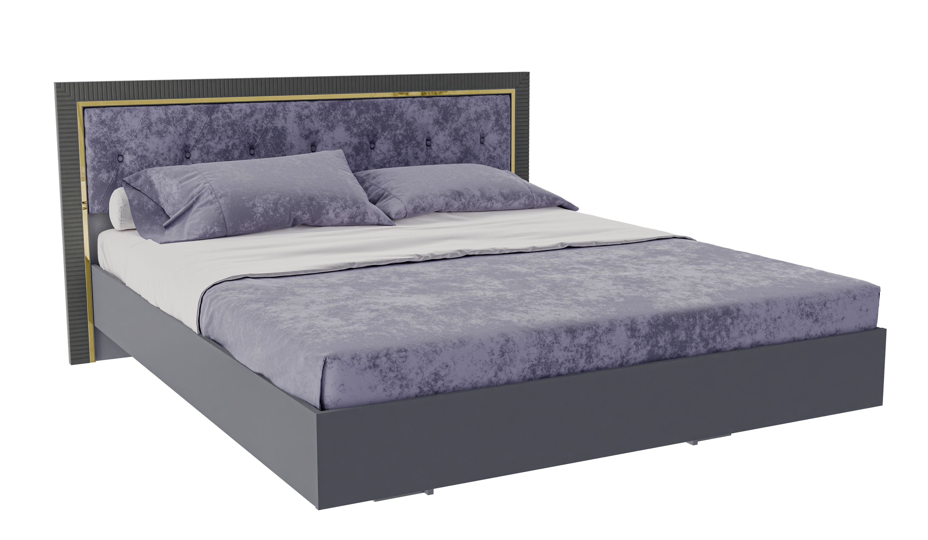 -Голд Кровать 1.6-1800x950x2032 -анртацит(с мягким изголовьем, золотой молдинг)