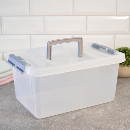 Контейнер 10л с защелками и ручкой "Клик", бирюзовый С274БИР