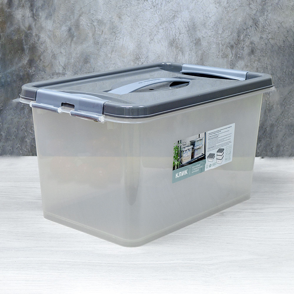Контейнер 10л с защелками и ручкой "Клик", темно-серый
