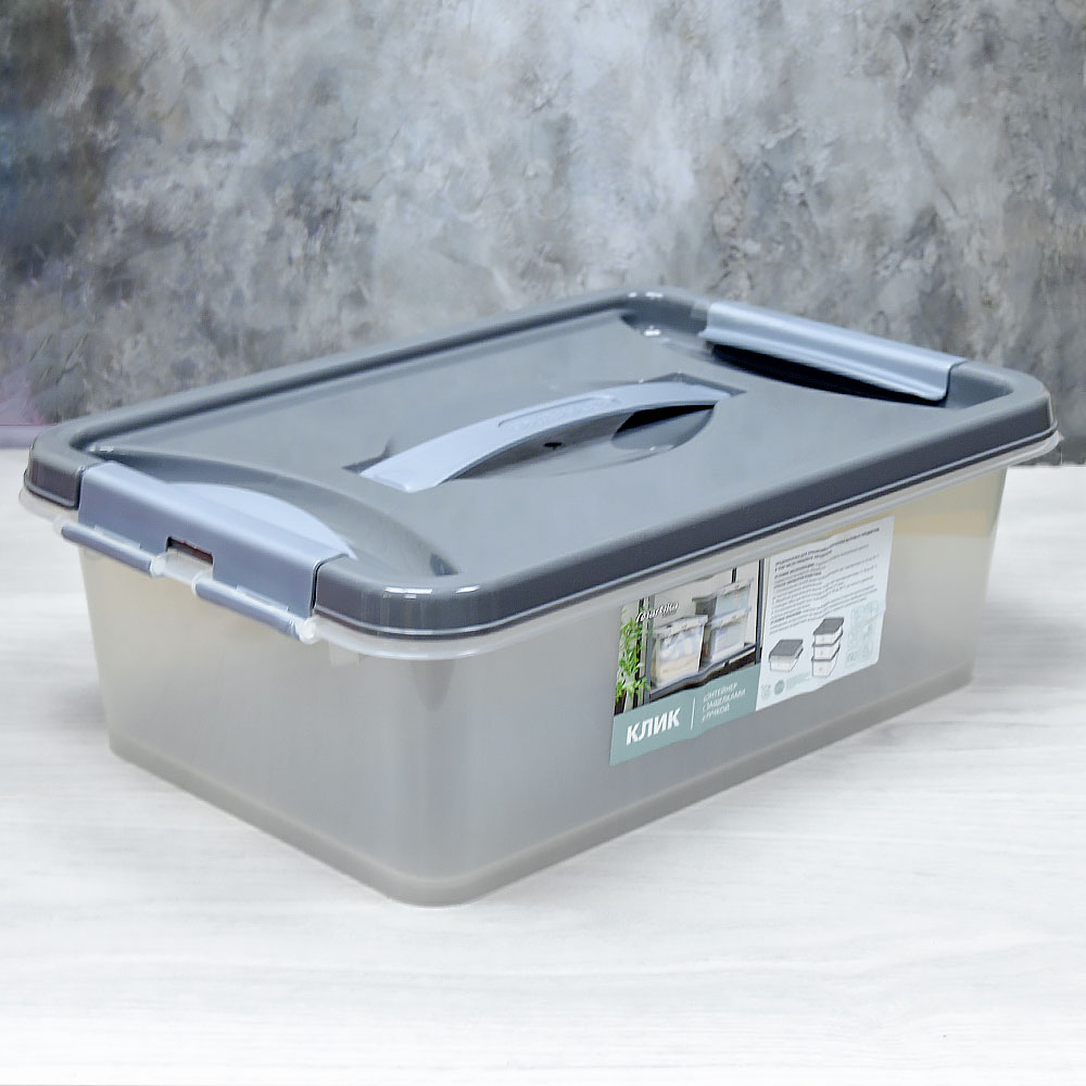 Контейнер 6л с защелками и ручкой "Клик", темно-серый
